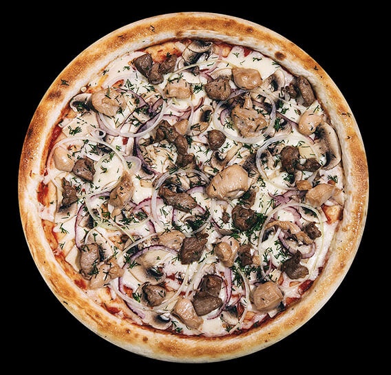 говяжый язык, цыплёнка, корнишоны, лук красный, паприка маринованная, моцарелла, сырный соус, сливочно-чесночным соус