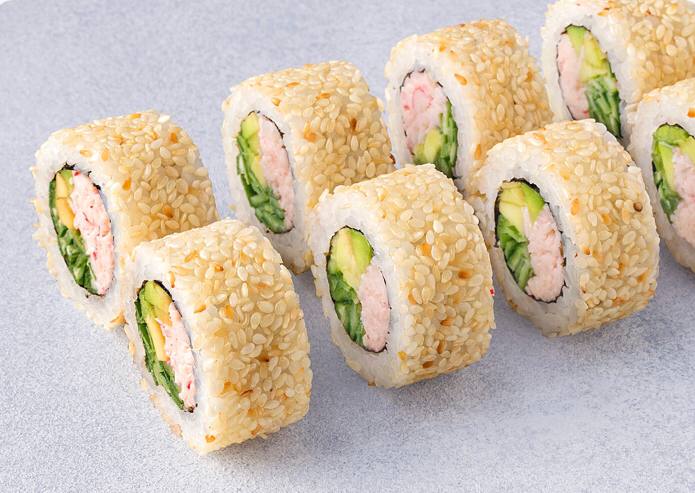 Краб-крем, огурец, авокадо, кунжут. 8шт.